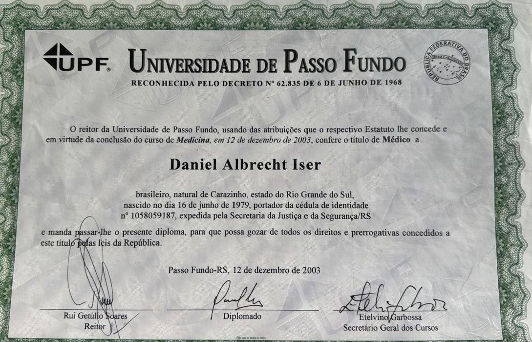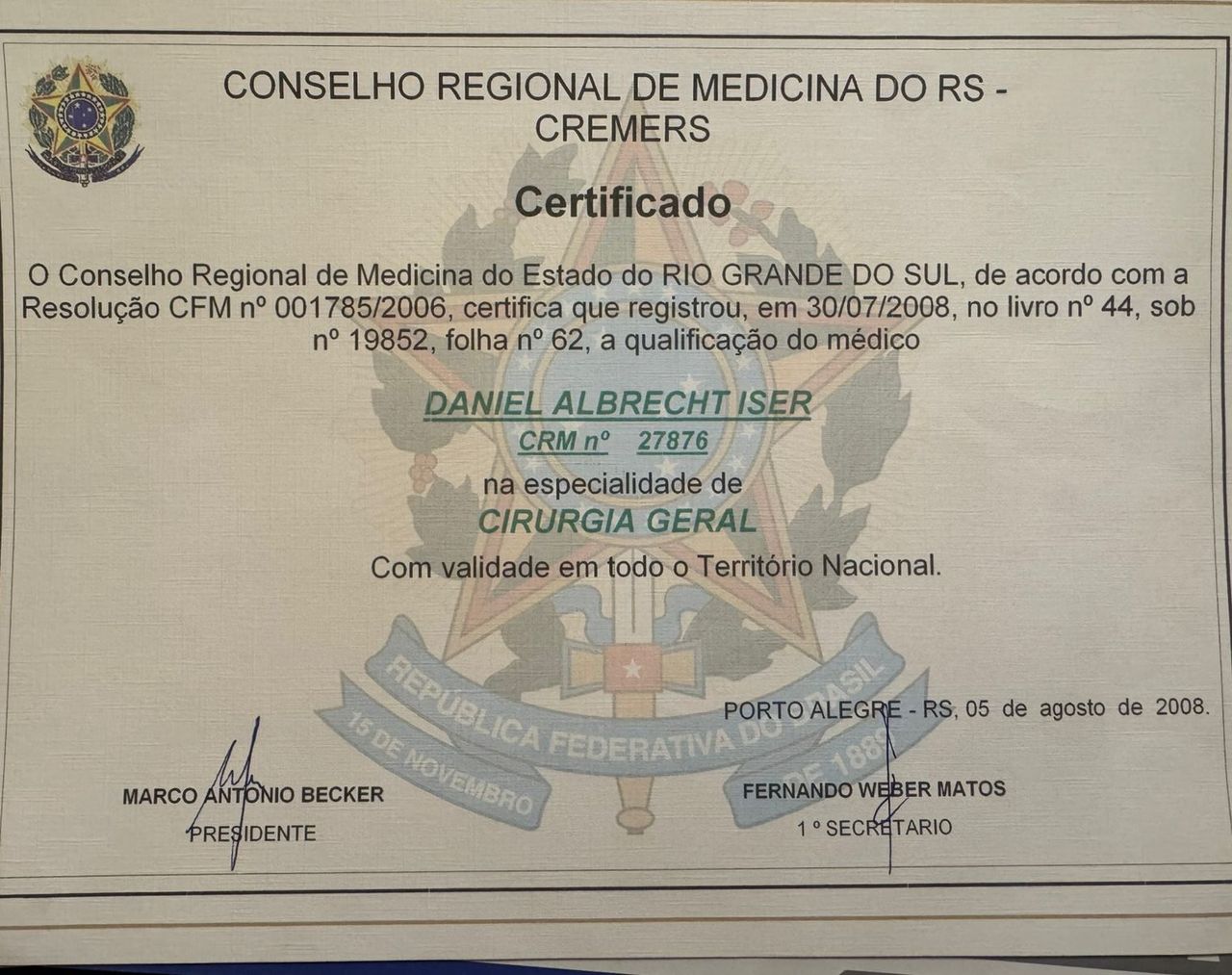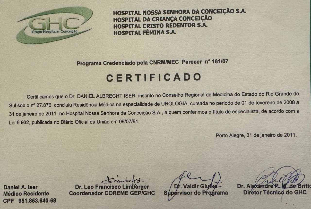 Médico Urologista e Andrologista. Residência médica em Cirurgia Geral e Urologia no Grupo Hospitalar Conceição de Porto Alegre/RS. Mestrado em Ciências da Saúde pela Universidade do Sul de Santa Catarina. Professor da Faculdade de Medicina da Universidade do Sul de Santa Catarina. Áreas de atuação em Uroginecologia, Disfunções miccionais, Infertilidade, Disfunções Sexuais, Urologia Reconstrutiva e Cirurgia Minimamente Invasiva
